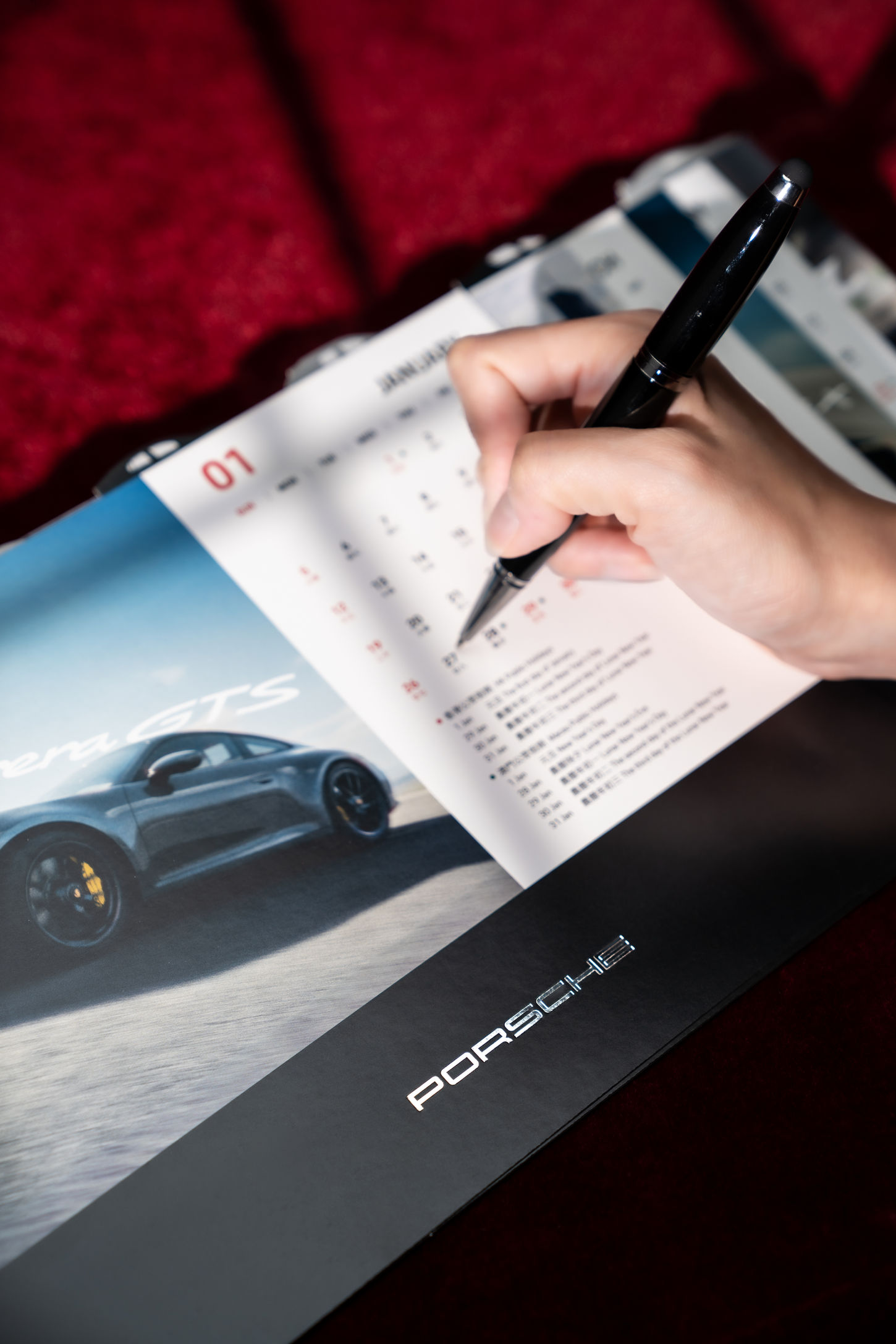 保時捷 2025 年月曆以 “品牌質感與實用設計的融合” 為核心,打造出兼具收藏與日常屬性的視覺呈現。月曆採用黑色皮質收納套,壓印 “PORSCHE” 品牌標識,紅色線條點綴強化精緻感,收納套兼具 “支架” 功能,可放置平板等電子設備,讓收納、展示與實用屬性融為一體,延伸了品牌周邊的實用性。