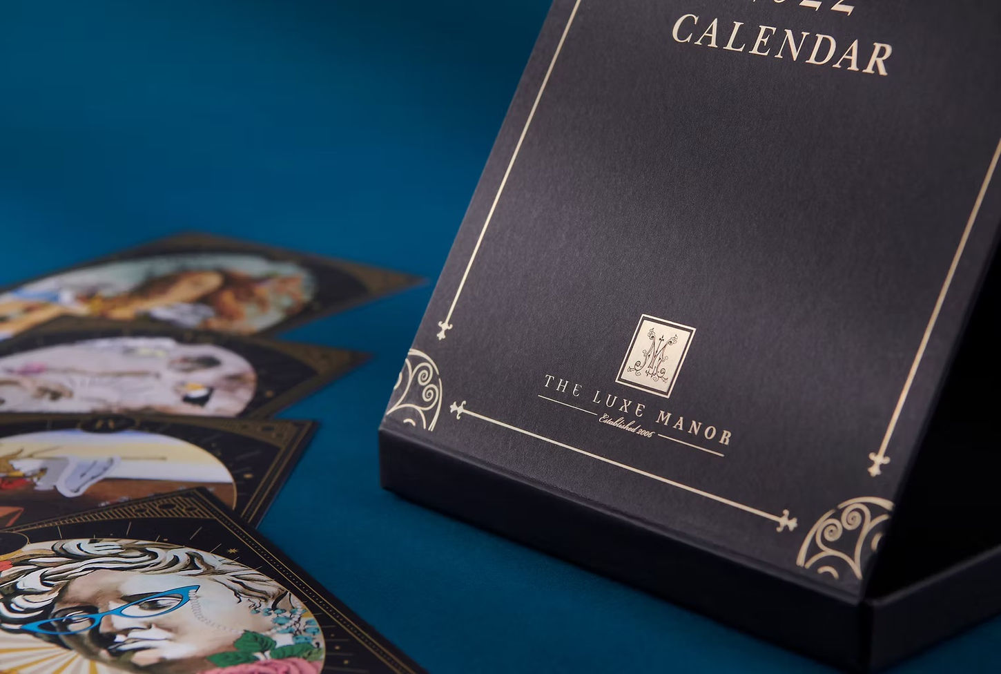 月曆的包裝盒為黑色,盒面上燙金的 “2022 CALENDAR” 字樣醒目且富有質感,周圍輔以精緻的裝飾花紋,進一步提升了整體的奢華氛圍,與內部藝術感滿滿的卡片相得益彰,從外到內都展現出高品質的設計水準。這款月曆不僅能作為日常查看日期的工具,每一張充滿藝術感的卡片,都具有一定的收藏價值,可供藝術愛好者欣賞、收藏或擺放,很好地契合了 THE LUXE MANOR 所倡導的高品質、富有藝術格調的生活方式。